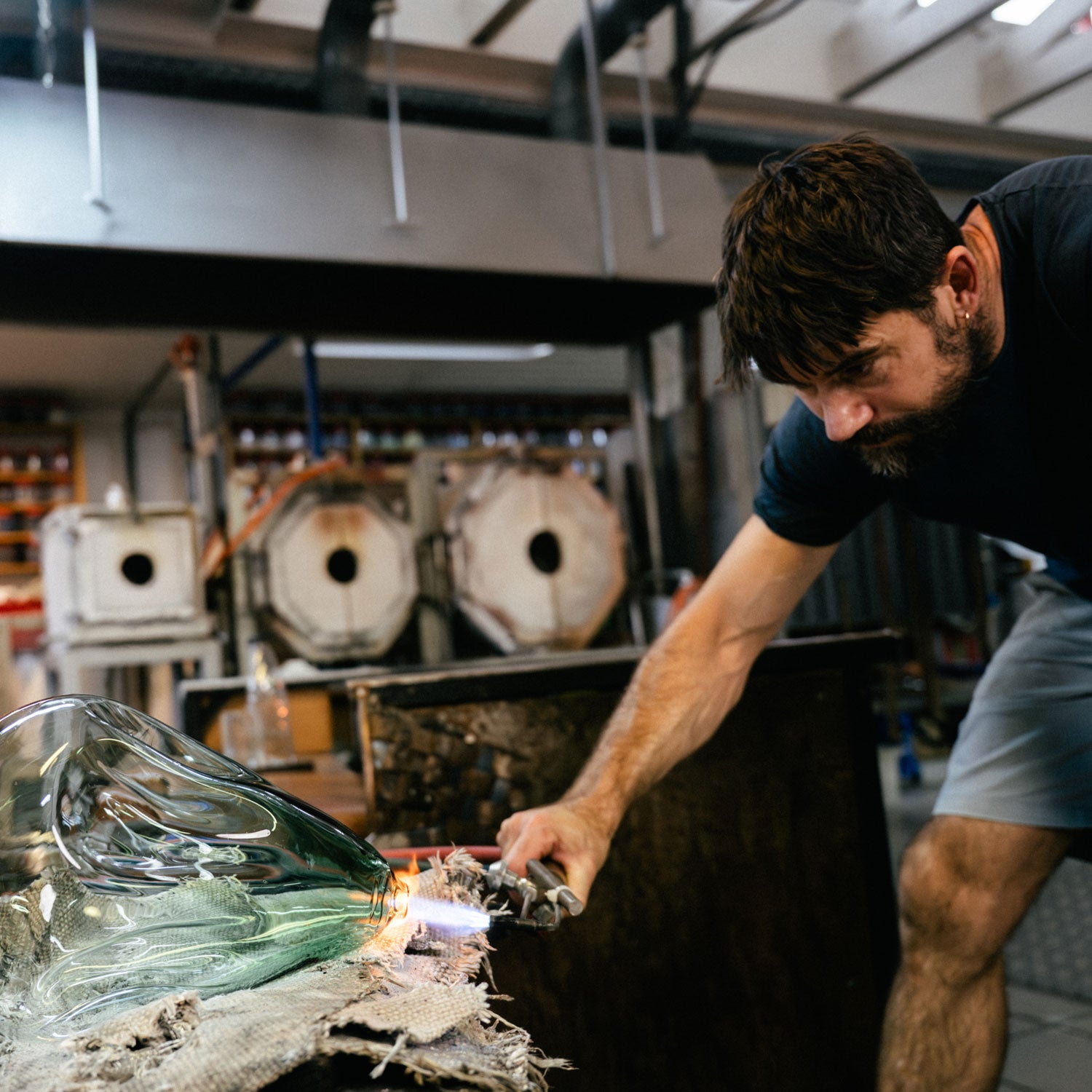 Glass itself is so versatile. You have so many colours, so many effects — there is so much to choose from. But first and foremost, the transparency of glass and how it reflects light is perhaps the most beautiful thing about it. And I love the process of glassblowing, which is what we used for this project. It’s so in the moment; you almost get a high from it.